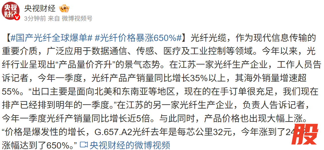 国产光纤全球爆单 部分产品价格暴涨650%国产光纤全球爆单 部分产品价格暴涨650%